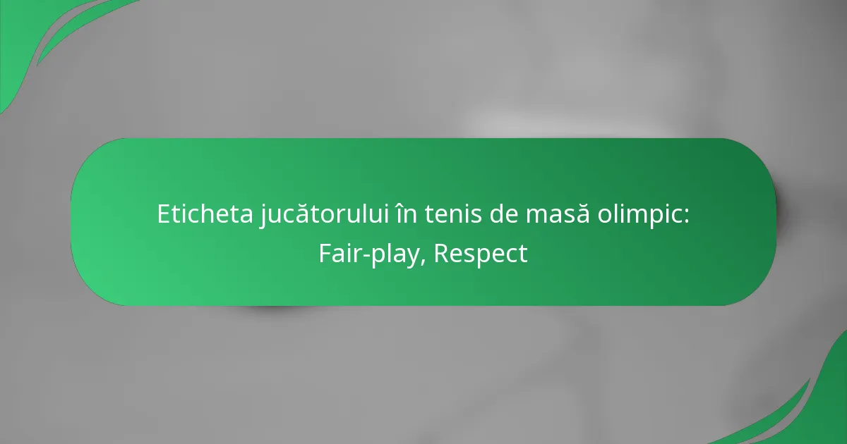 Eticheta jucătorului în tenisul de masă olimpic cuprinde comportamentele și atitudinile esențiale pentru promovarea unui mediu respectuos și competitiv. Aceasta include demonstrarea fair-play-ului, respectul față de adversari și oficiali, precum și respectarea principiilor jocului corect. Prin adoptarea acestor valori, jucătorii nu doar că își îmbunătățesc propria experiență, ci contribuie și la integritatea sportului în ansamblu.