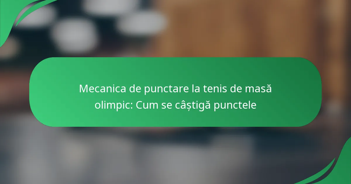 În tenisul de masă olimpic, punctele sunt obținute printr-un sistem de punctaj bazat pe raliuri, asigurându-se că fiecare raliu rezultă într-un punct pentru un jucător. Meciurile sunt de obicei jucate într-un format de tip cel mai bun din șapte jocuri, jucătorii având nevoie să ajungă la 11 puncte pentru a câștiga un joc, menținând în același timp un avans de două puncte. Acest sistem de punctaj a evoluat de-a lungul timpului pentru a îmbunătăți ritmul jocului și implicarea spectatorilor, influențând strategiile jucătorilor în timpul meciurilor.
